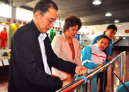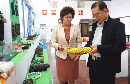 (考察公司研發(fā)的水上安全救生繩纜)